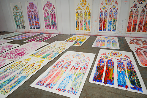 For several months, the Atelier Simon-Marq has been devoted to a singular creation… A series of 14 stained glass windows envisioned by artist Jean-Paul Agosti for the Church of the Sacré-Cœur in Geneva, an extraordinary place.